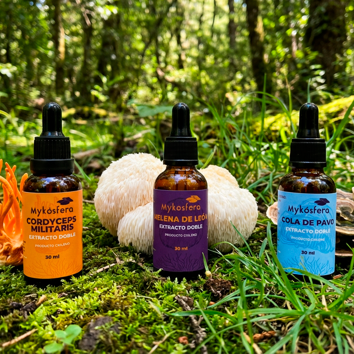 Extracto de Melena de león, Cordyceps militaris y Cola de pavo. Descubre la potencia de estos tres extractos en tu día a día en formato Pack.